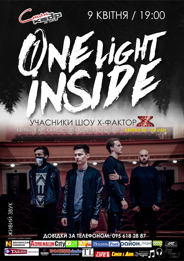 Сольний концерт гурту «ONE LIGHT INSIDE» відбудеться в арт-кафе «Стоп кадр» 9 квітня о 19:00.