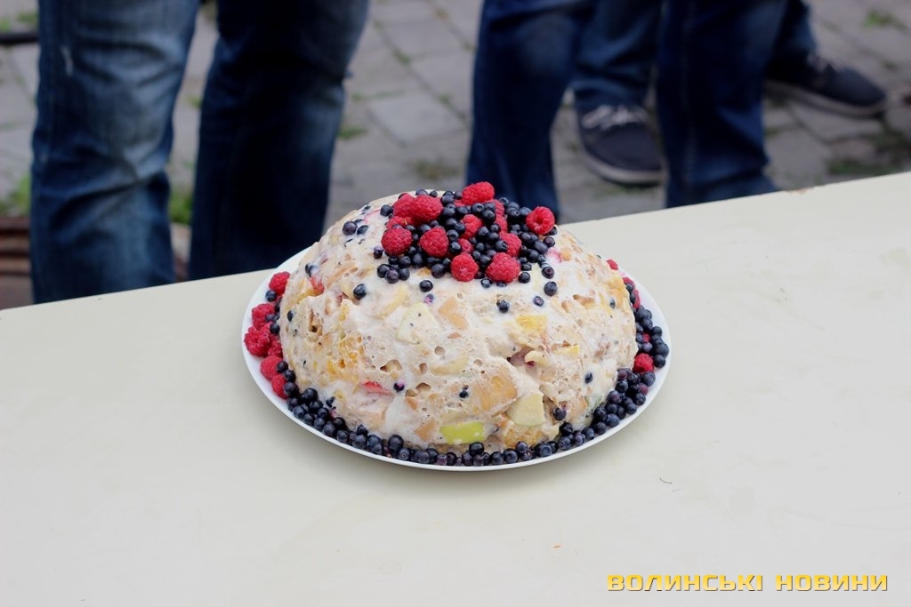 Найдорожчим лотом, який був проданий на аукціоні, стали бельгійські вафлі з фруктами, які приготувала депутат Луцької міської ради, член депутатської групи «Новий Луцьк» Ірина Констанкевич. Вафлі її авторства викупили за 700 гривень.Ще одним вартісним лотом став холодний торт від лідера гурту «Фіолет» Сергія Мартинюка. За його витвір заплатили 600 гривень. Маленькому Максиму, який торгувався за торт Сергія Мартинюка, до такої значної суми доклав з власного гаманця столичний журналіст Андрій Куліков, аби покупка дісталася хлопчику. Потім долучилися до цього «міні-флеш-мобу» й інші глядачі.Власне, це не всі «зіркові» лоти. Перший заступник Луцького міського голови Тарас Яковлев приготував козацький куліш. «Бонусом» до цієї страви стало горнятко медовухи. Цю страву продали з аукціону за 300 гривень.Редакція інтернет-видання Волинський інформаційний портал частувала кручениками з сирним соусом, які «пішли з молотка» за 350 гривень.Депутат міської ради Андрій Козюра приготував червоний борщ, казанок якого він оцінив у 300 гривень. До борщу додавалися й канапки з салом та маринованим огірочком. Казанок борщу викупили організатори за 300 гривень.Під час аукціону продали й справжній гуцульський банош, авторства ведучого радіо «Луцьк» Сергія Ткачука. Він зауважив: справжній банош в Луцьку скуштувати мейже неможливо, тож у гостей фестивалю є унікальна нагода спробувати цю страву. Зі слів Сергія Ткачука, всі вимоги оригінального рецепту витримані, адже, за правилами, справжній банош має готувати чоловік. Цю страву на фестивалі продали за 150 гривень.Запечений короп з овочами від депутата міської ради Аскольда Пекарського пішов «з молотка» за 250 гривень.«Відомості.ua» представляв Михайло Гарщаль. Він приготував пасту «Карбонара», за яку глядачі заплатили в скарбничку 200 гривень.За 100 гривень продали короп з морквою та часниковими хвостиками, який приготував депутат Луцької міської ради Олександр Пиза з сином.Олена Чернуха з ВОДТРК приготувала торт з домашніх трюфелів. За це в скриньку для бійців 14 бригади вкинули 350 гривень.Курка каррі на подушці з молодої картоплі-фрі з двома соусами від Павла Березюка з «Волинського агентства розслідувань» на аукціоні завартувала 100 гривень.Всі інгредієнти до страв учасники вибирали самі. Напередодні аукціону їх прикріпили до одного з ресторанних закладів, де вони користувалися робочою поверхнею та необхідним кухонним начинням.