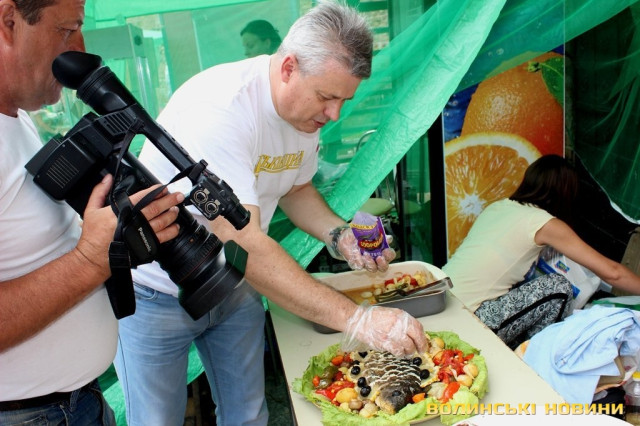 Один із анонсованих заходів - благодійний аукціон, під час якого луцькі політики та журналісти готували на природі власні страви, а потім продавали їх з аукціону. Всього в аукціоні взяло участь 11 учасників. З-поміж них - відомі в місті люди.