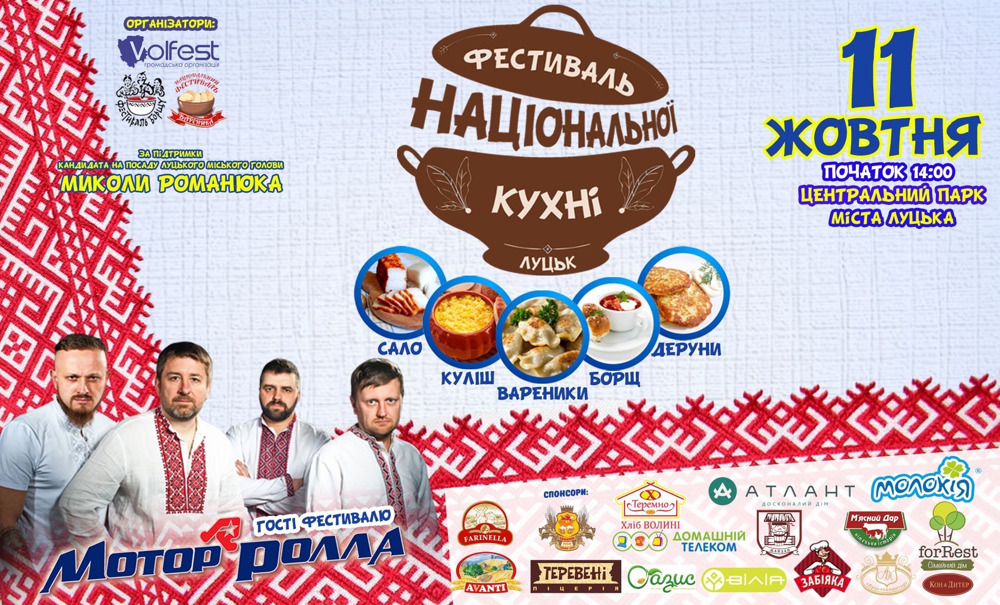11 жовтня в Центральному парку Луцька відбудеться сімейне свято"Фестиваль національної кухні".