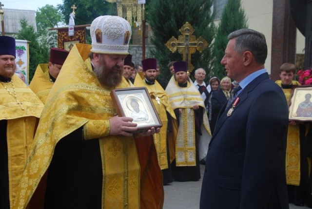 Медаль «Волинської ікони Пресвятої Богородиці» вручили меру міста Миколі Романюку представники духовенства.