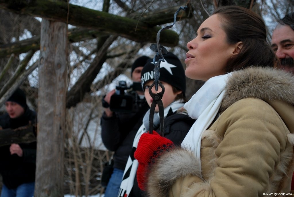 З домопомогою коваля, сина та колеги Євгена Суслова Наталія Королевська викувала «Квітку надії», яку згодом винесла на вулицю, загадала бажання, подмухала на неї та занурила в сніг.