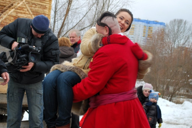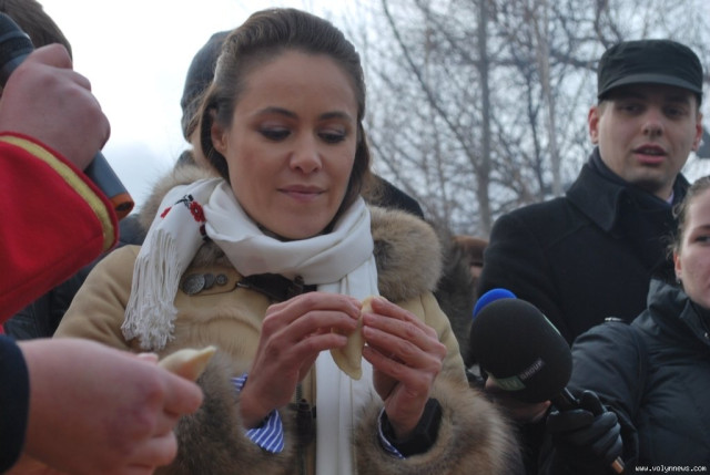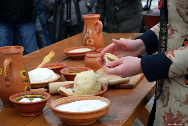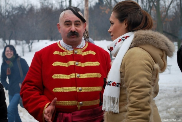 Після спілкування з журналістами Королевська з сином Ростиславом взяли участь в Святі українського вареника, яке відбувалося у столичному музеї під відкритим небом «Мамаєва Слобода». До слова, його запровадили, аби провести Масляну.
