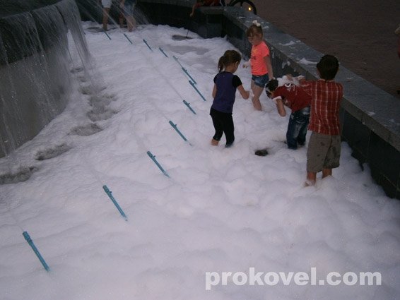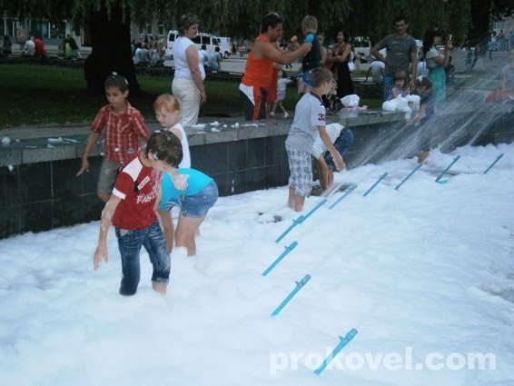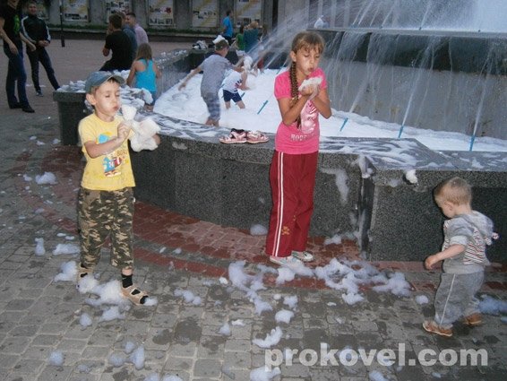 У фонтані було повно дітвори, яка там розважалася, борсалася, розносила піну, котра мала специфічний запах, навкруги.
