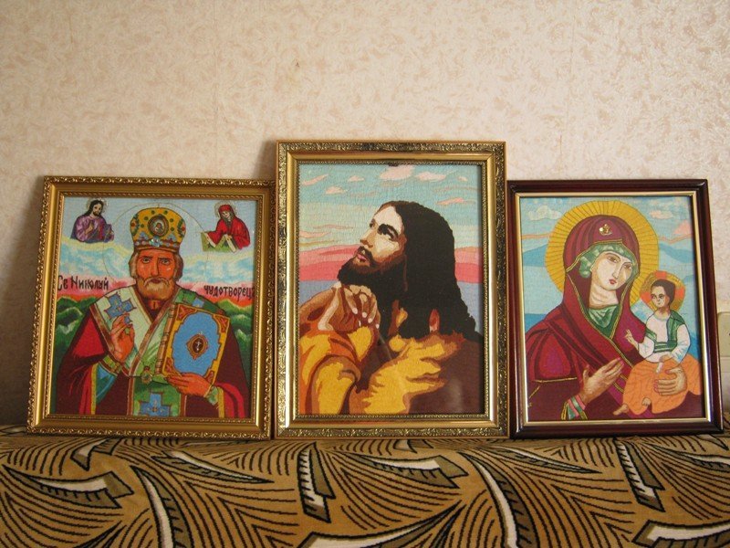 Є чимало ікон, вишитих у кількох примірниках.