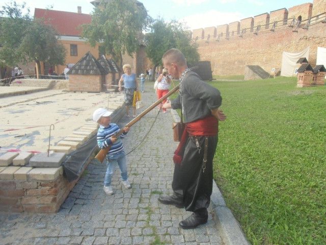 Так, усі, хто завітав сьогодні до Луцького замку, змогли відчути себе мешканцями давніх часів. Людей частували гарячим кулішем, давали постріляти з рушниць та сфотографуватися із справжніми козаками.