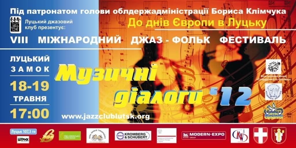 Луцький джазовий клуб, Волинське молодіжне громадське об’єднання «Єднання», ВОГО «Фонд місцевого розвитку» та Благодійний фонд «Співдружність-Волинь» запланували провести 18-19 травня VІІІ Міжнародний джазовий фестиваль «Музичні діалоги 2012», приурочений до святкування Днів Європи в Україні.