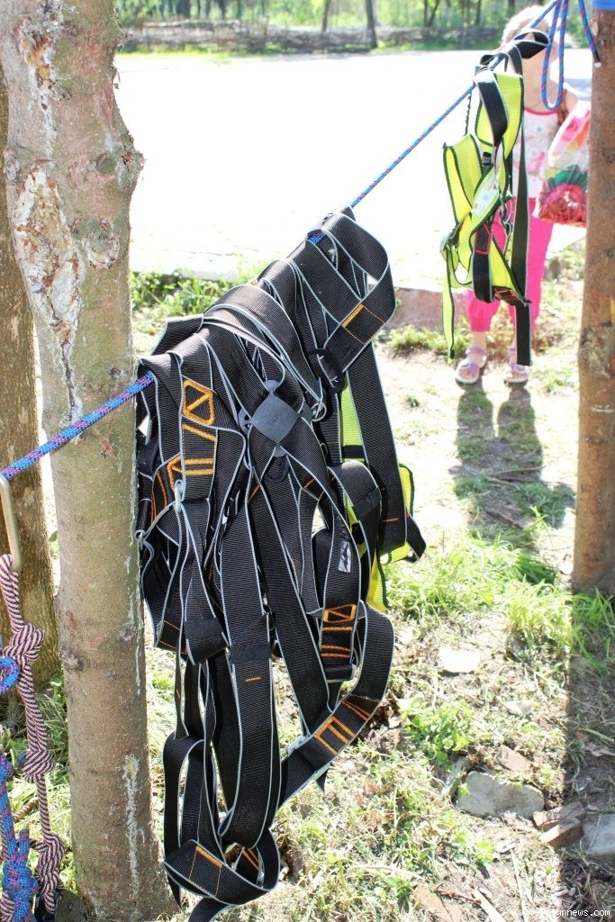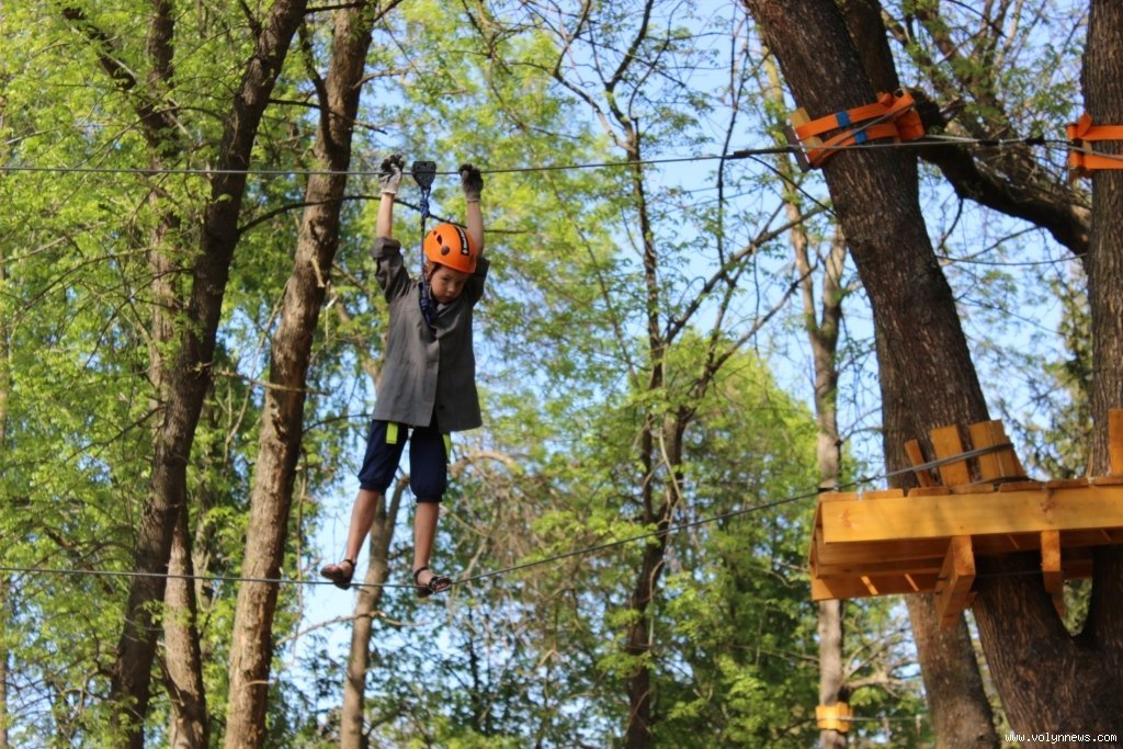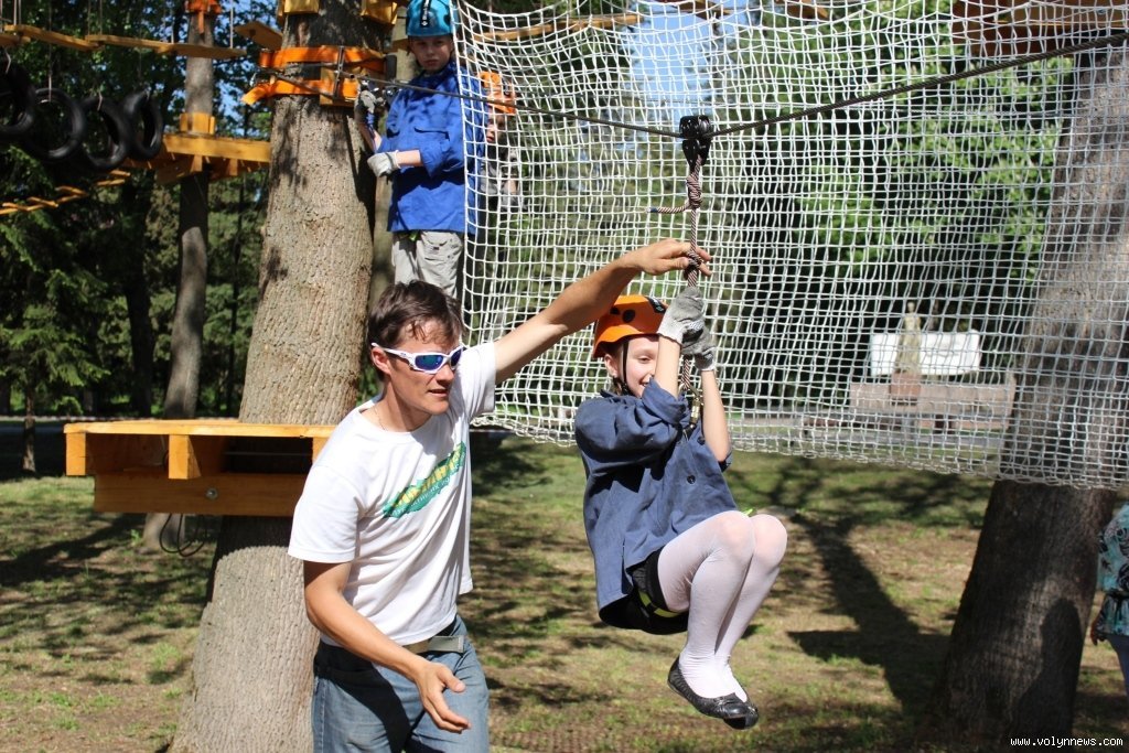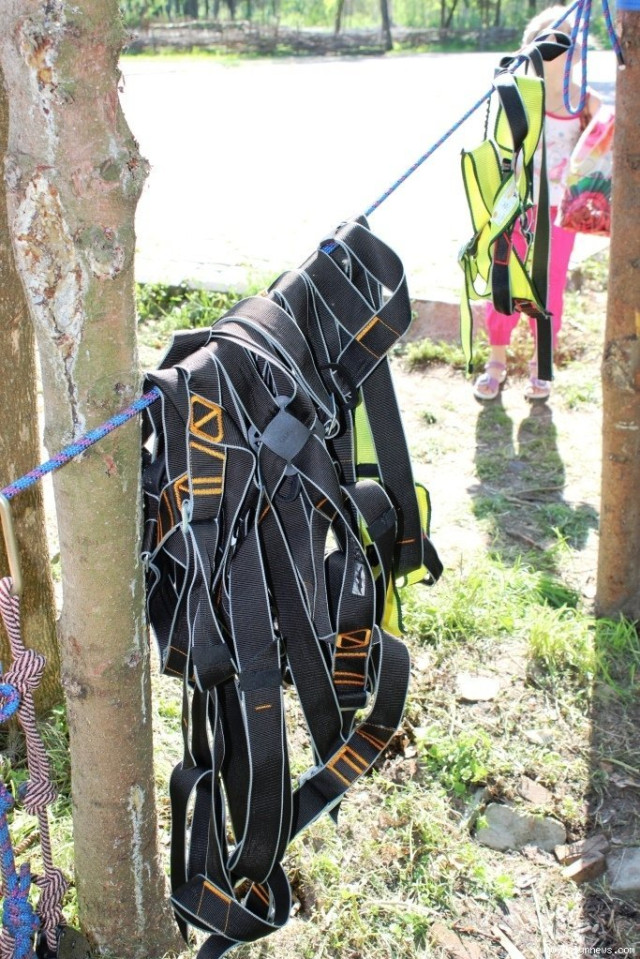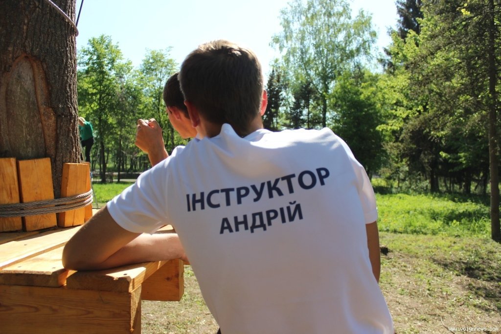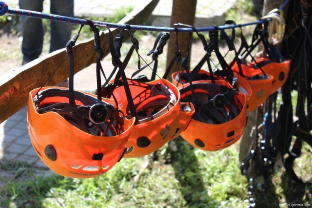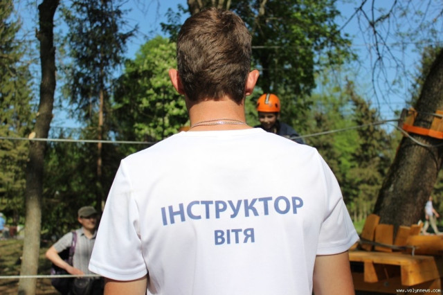 Аби пройтися мотузковою стежиною, потрібно одягнути шолом та спеціальне спорядження. Кожному, хто наважився випробувати себе на міцність тіла й духу, інструктор дає настанови.