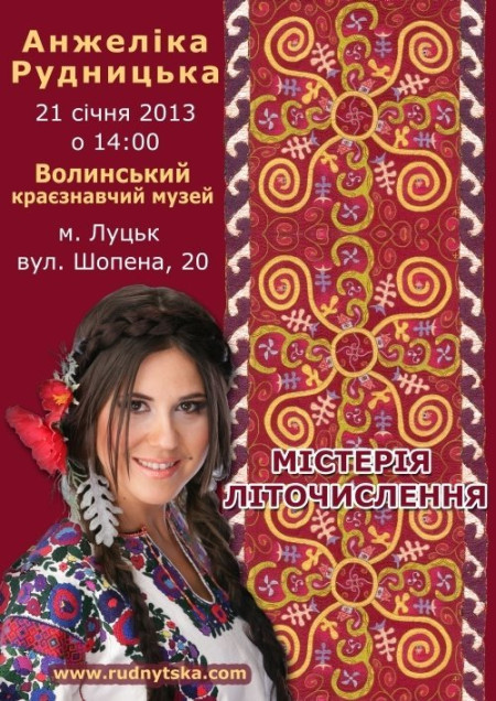 Персональна виставка співачки, журналістки, телеведучої, заслуженої артистки України Анжеліки Рудницької «Містерія літочислення» відкриється у Луцьку, у понеділок, 21 січня.