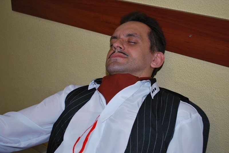 «Так, була тут група людей, - каже офіціантка, - Але були зовсім трошки: приїхав хтось, крикнув: вас викликає до себе професор!!!» Вони й поїхали.