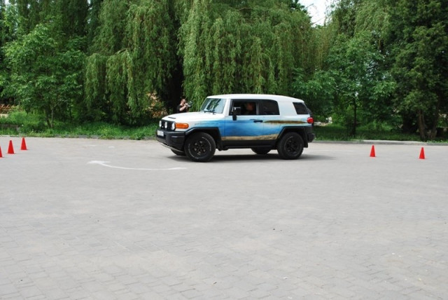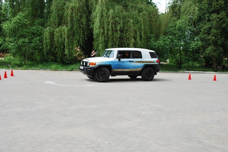 В автошколі від дає учасникам завдання продемонструвати вправність водіння – зробити «змійку».