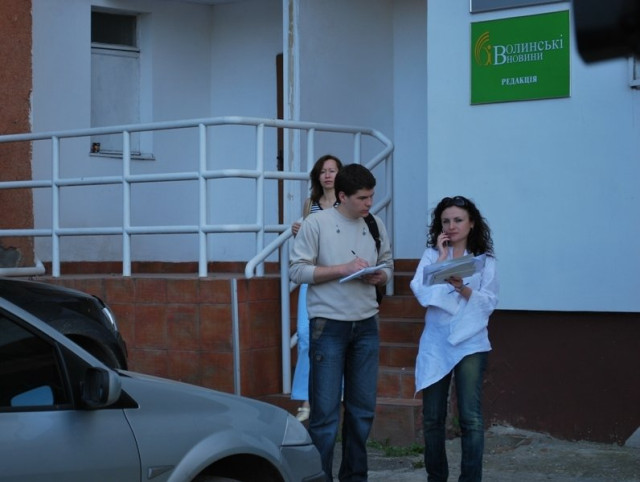 До редакції вривається невідомий. Погасло світло, пролунав постріл.