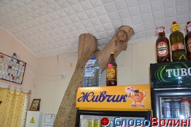 Неймовірна знахідка: на одній з вулиць Луцька продуктовий магазинчик побудували ... довкола дерева. Чи то дерево проросло крізь крамничку.
