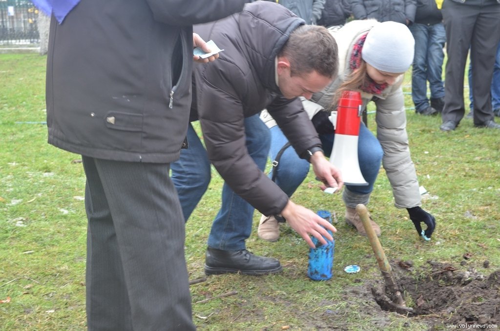 Припущення записували на папірці та складали в пляшку, яку згодом закопали прямо на Театральному майдані Луцька.