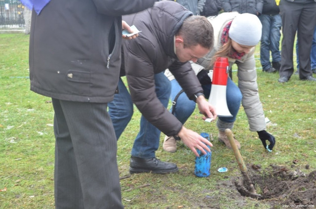 Сьогодні її відкопали та зачитали вголос записи лучан, які вони лишили у вівторок, 26 листопада. Так, більшість людей усе ж сподівались на те, що президент підпише Угоду про асоціацію з Євросоюзом. Вистачало й тих, хто вважав, що договір не підпишемо і в країні відбудеться справжня революція, яка закінчиться поваленням чинної влади.