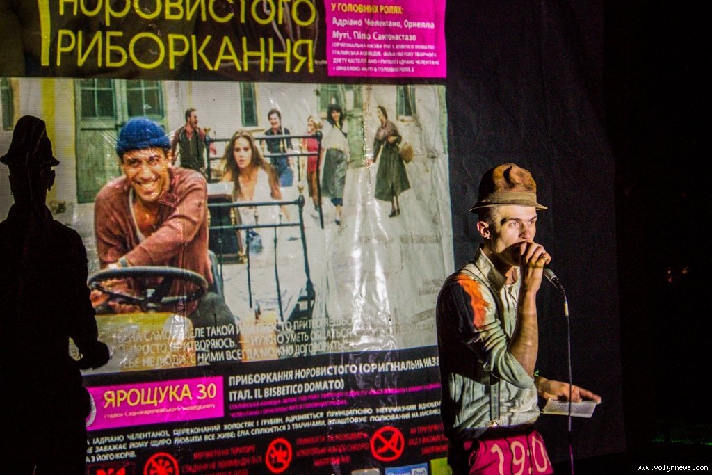 Зважаючи на те, що на календарі вже давно не літо, організатори Шостого кіноперегляду під відкритим небом вирішили зігріти присутніх класикою жанру – італійською романтичною комедією «Приборкання норовливого», з Адріано Челентано та Орнеллою Муті в головних ролях. Охочих ще раз пережити з головними героями цю лав-сторі зібралось більше трьох сотень.