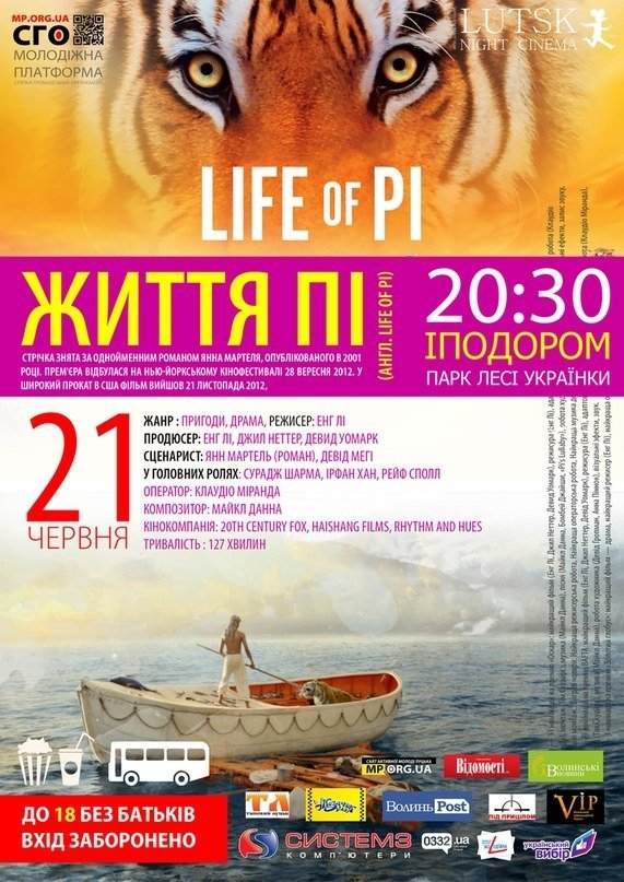 Цього разу на глядачів чекає кіно з присмаком Індії «Життя Пі». Захід розпочнеться у п'ятницю, 21 червня, о 20:30 на іподромі.