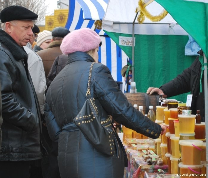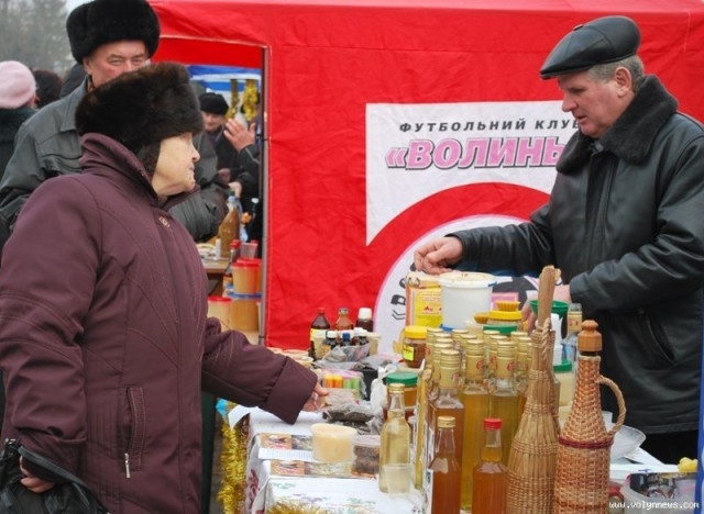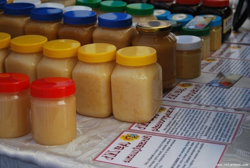 Серед товарів - найрізноманітніша продукція з меду, воску, прополісу, маточного молочка та інших продуктів бджільництва.