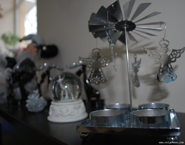 Її колега Ольга Клімчук демонструвала як створити новорічний вінок з мішури та різноманітного декору – дзвіночків, кульок, ялинкових шишок. Клімчук каже, що такий елемент новорічного декору під силу кожному.