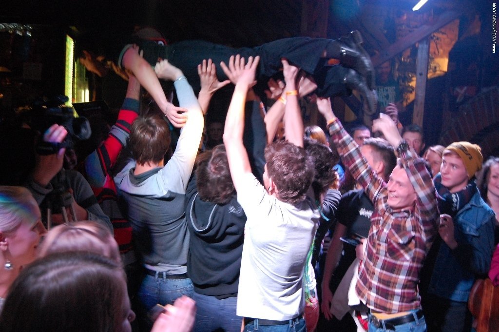 Також Положинський нагородив найкращих учнів рок-школи дипломами «Кращий учень жовтня». Після цього він порадив учасникам концерту спробувати «стейдж дайвінг» (стрибки під час концерту зі сцени в натовп, який підхоплює того, хто стрибнув, на руки, – «ВН»), від чого рок-школярі і не відмовилися.