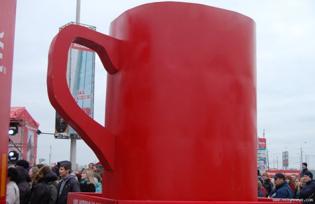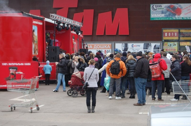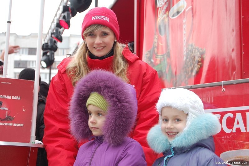Тим часом хлопці та дівчата у спеціальних костюмах роздавали охочим гарячу каву та солодощі.