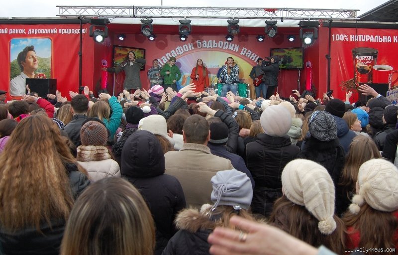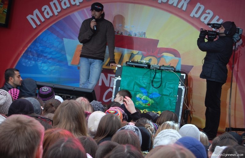 Ранок 21 березня понад дві сотні лучан зустрічали у компанії працівників «Нового каналу» – в Луцьк приїхало ранкове шоу «Підйом» в рамках проекту «Марафон бадьорих ранків».