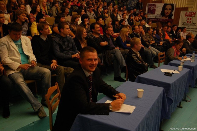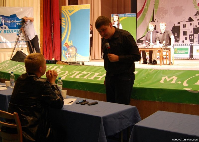 Подивитись, як нині жартують молоді українські кавеенщики прийшов і перший заступник волинського губернатора, а заодно і депутат облради й очільник волинських «регіоналів» Олександр Башкаленко. Разом з ним прибув ще один заступник голови ОДА, депутат Волиньради Олександр Курилюк.