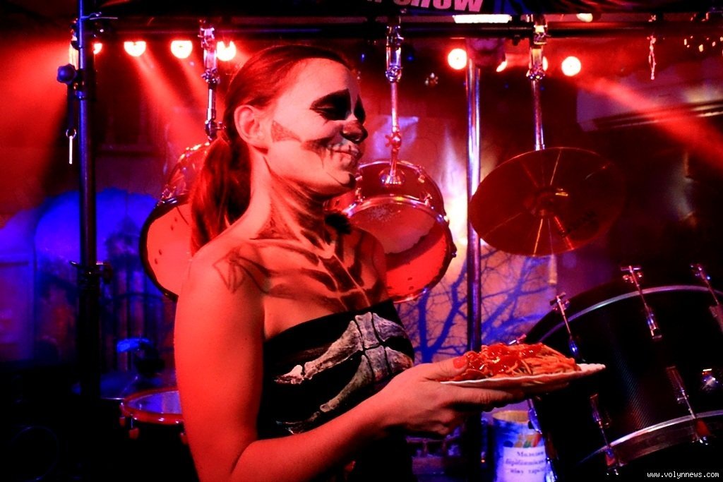 Варто зазначити, що на кожен Хелоуін традиційно у «Кораблику» обирають найкращий костюм. Тому «на закуску» нечиста сила ще й поважно дефілювала закладом. Так, цього разу в змаганні перемогла журналістка Волинських Новин Вікторія Семенюк, яка постала у образі злої чаклунки. Почесне друге місце відвоювала панянка у амплуа Едварда руки-ножиці з відомого фільму. А третє місце обирали своїми оплесками глядачі.