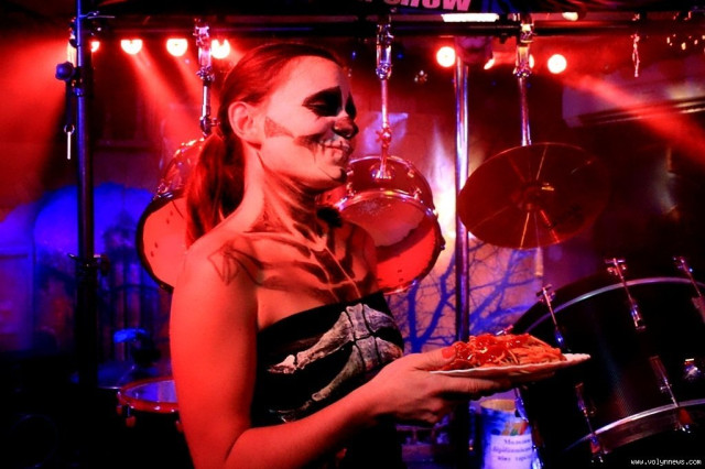 Запалював публіку дотепними жартами ведучий «зльоту чортівні» славнозвісний М'ячик. До слова, цьогорічний вечір усіх святих був не лише «жахливим та моторошним», а й «ударним», адже уся «погань», яка завітала до улюбленого пабу мала змогу шалено повідриватися під барабанні ритми від «Garage Drum Show».