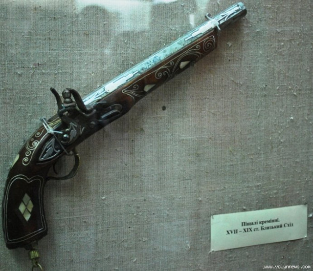 Цікаво, що й зброю такого рівня цінності музей виставляє вперше. Представлені «меч правосуддя», яким у старовину відрубували голови злочинцям, пістолі та рушниці, інкрустовані металом та перламутром, італійські кинджали, а також лицарські мечі.