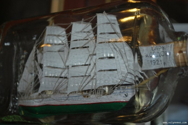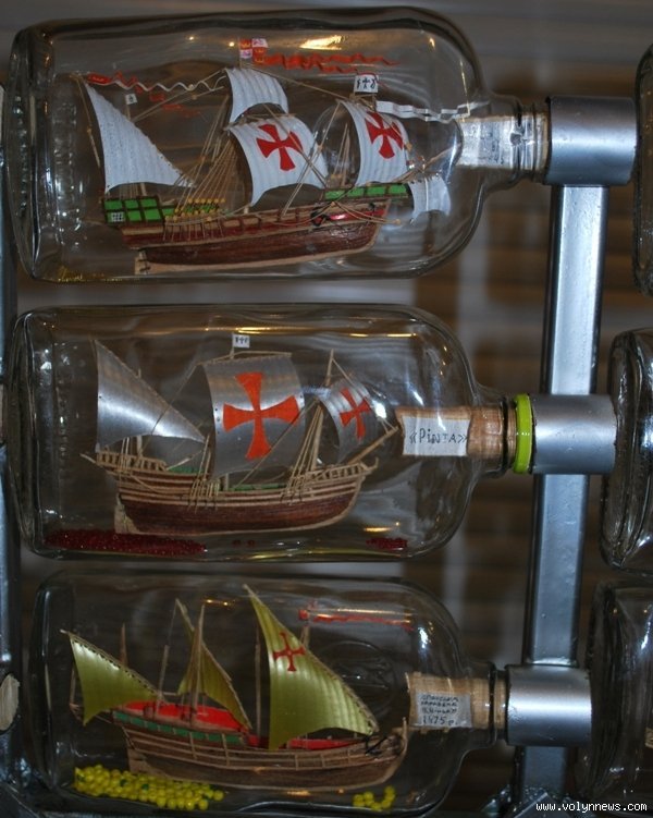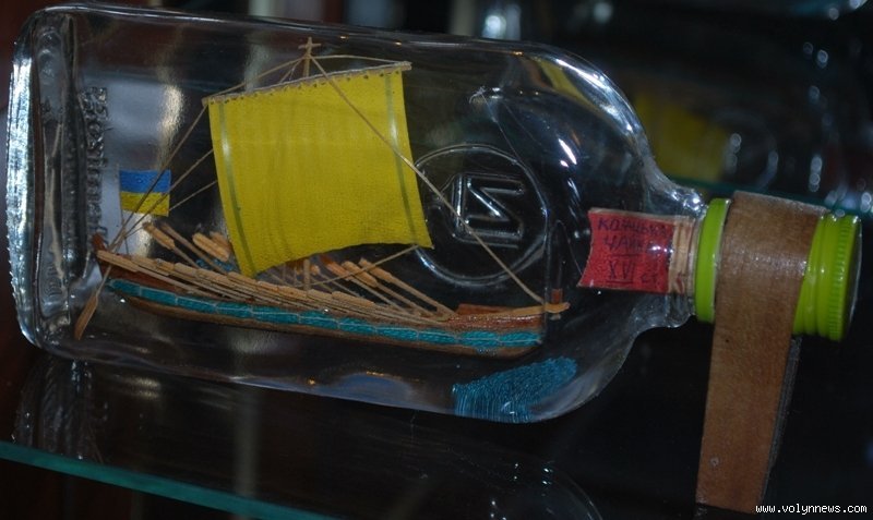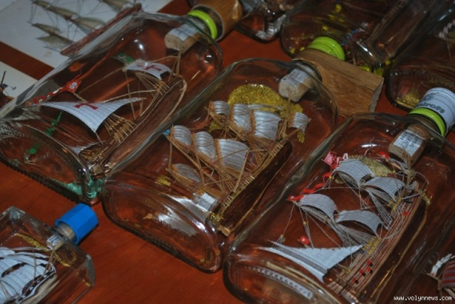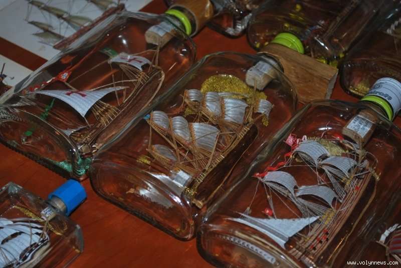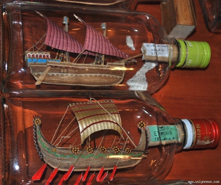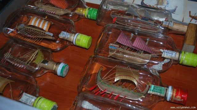 Виставка більше 70 вітрильників у скляних пляшках відкрилася 14 січня в Луцьку в холі центрального відділення «Західінкомбанку».