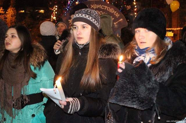 Понад дві сотні лучан зібралися на центральній площі міста, щоб поспівати колядки.