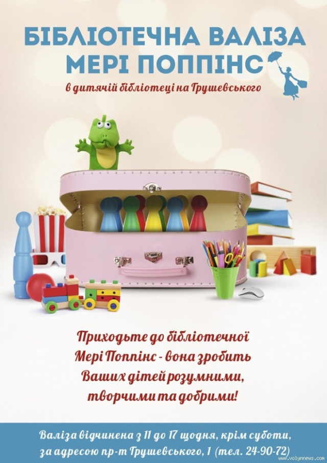 Центральна бібліотека для дітей, що знаходиться у Луцьку на проспекті Грушевського, 1, від жовтня розпочала свій новий проект «Бібліотечна валіза Мері Поппінс» для всіх мешканців міста.