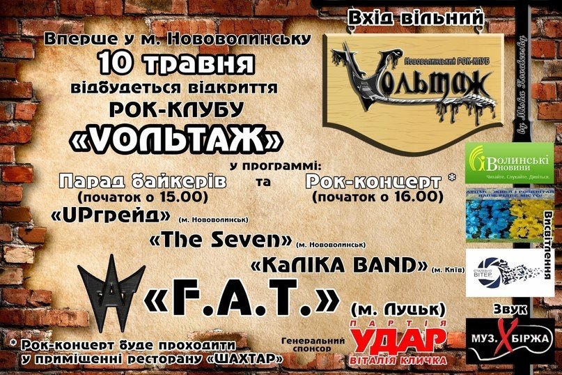 У Нововолинську поціновувачі «важкої» музики роблять рок-клуб. У рамках відкриття рок-клубу розпочнеться парад байкерів о 15:00, а вже о 16:00 - сам концерт.