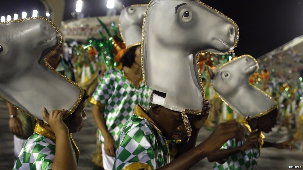 А 10 лютого розпочалися змагання між одягнених в химерні наряди танцюристів-представників різних шкіл самби.