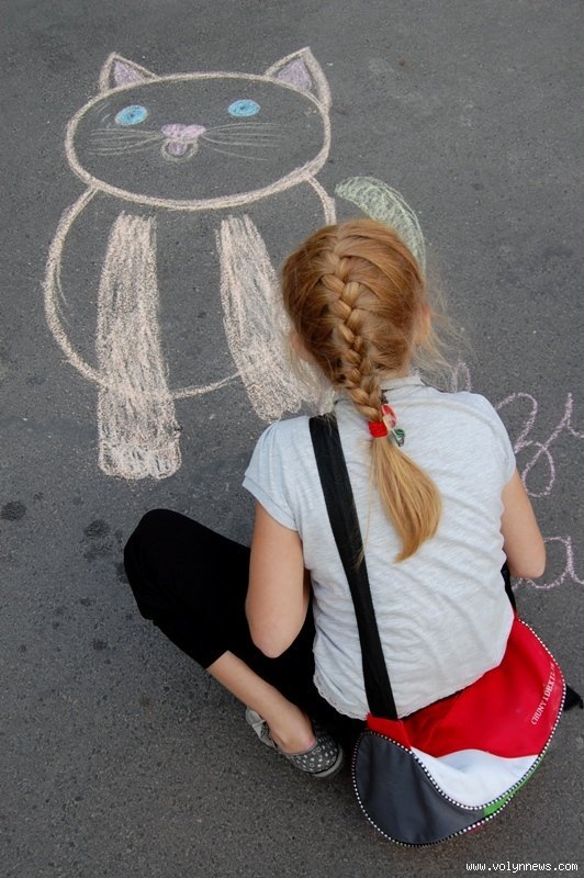 Біля мазанину «Зоосвіт» цього дня влаштували цілу акцію – діти малювали своїх котів та собак на асфальті, а ті, хто прийшли зі своїми песиками, демонстрували їхні вміння. Були тут собаки, які вміють танцювати, цілуватись, позувати, були й професійно дресировані пси.