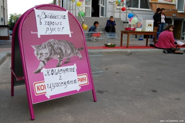 У Міжнародний день захисту тварин 4 жовтня у центрі Луцька, біля магазину «Зоосвіт» на вулиці Винниченка, роздавали чотирилапих безхатченків.