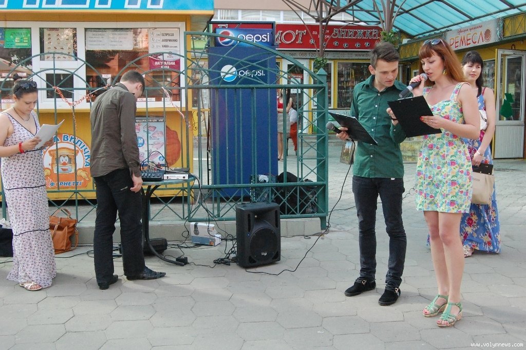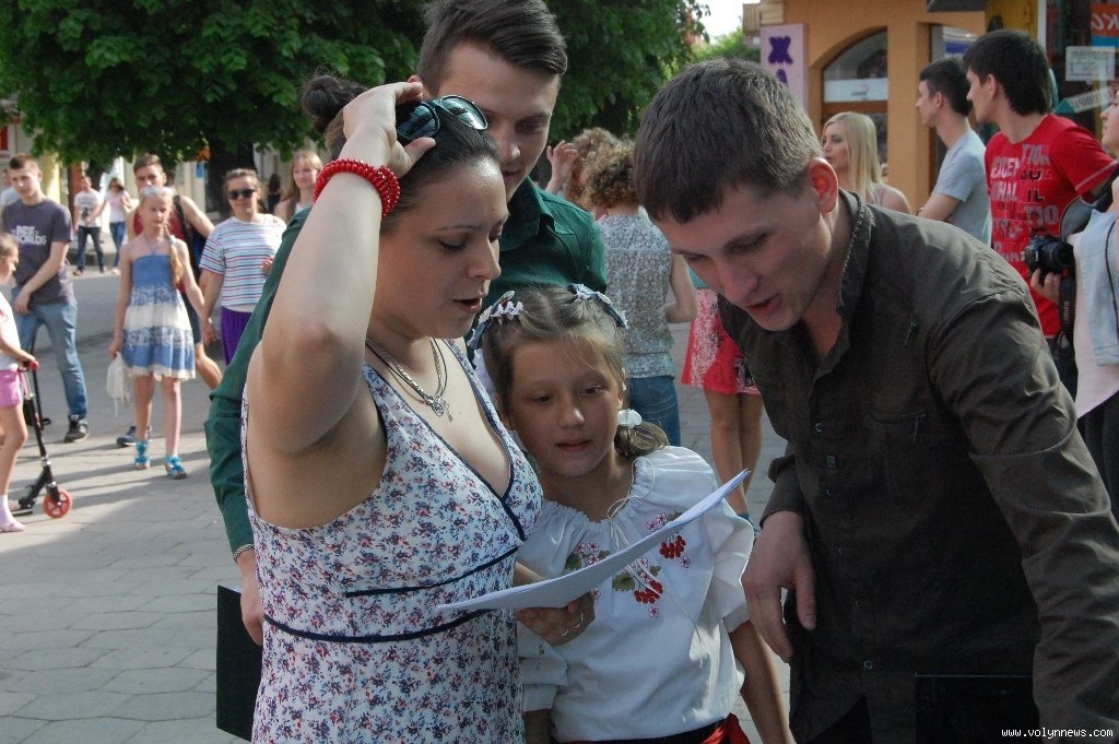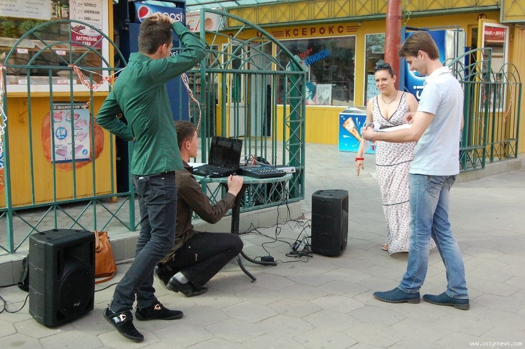 Запрошували на захід усіх охочих людей, які прогулювалися містом, для того, щоб привітати рідних із Днем Перемоги у формі пісенного подарунку. За участь у караоке людям вручали подарунки від Луцької міської ради, оскільки управління культури мерії виступило організатором. Зокрема, влаштували захід учасники клубу, який знаходиться на вулиці Драгоманова, 1 у Старому місті.
