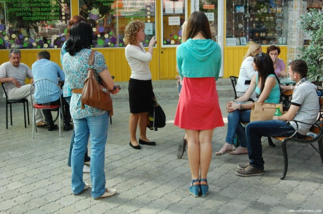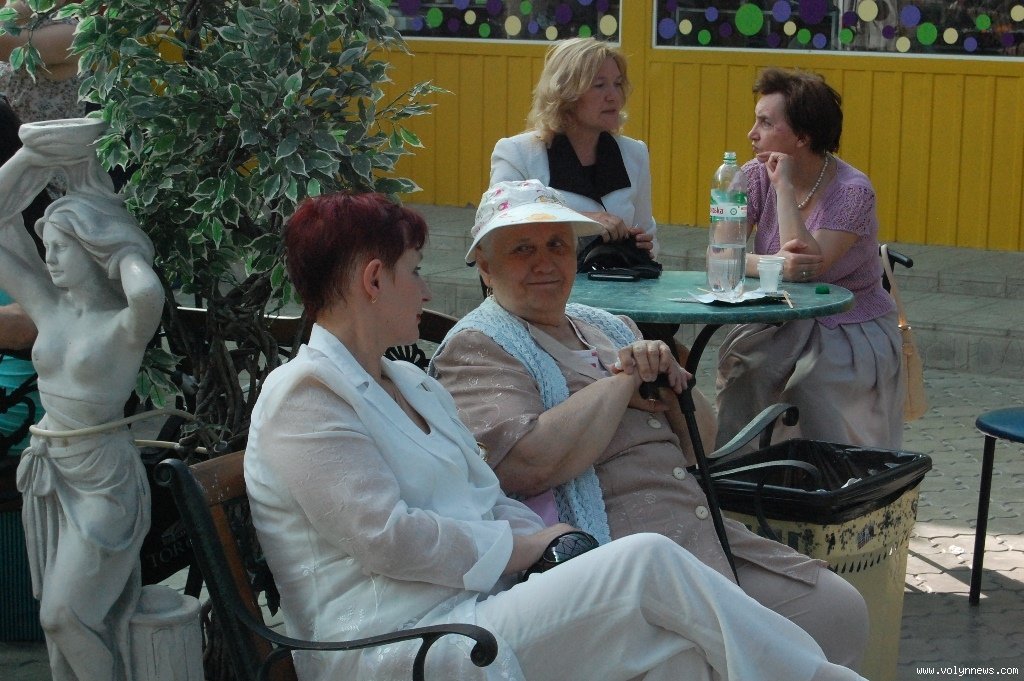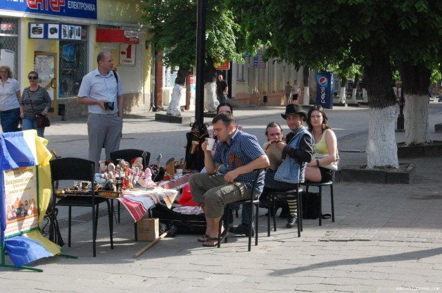 Хоч захід розпочався о 17 годині, утім люди збирали не охоче та проходили повз. Утім, вже приблизно через пів години заспівати вирішила молода дівчина Людмила і виконала пісню «Синий платочек». Після виступу вона привітала усіх зі святом та отримала у подарунок сувенір, виготовлений з глини.