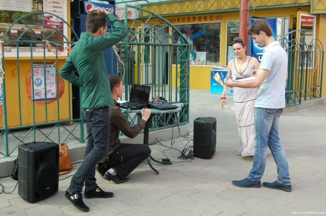 Святкове караоке, присвячене Дню Перемоги, влаштували поблизу «Книжкового пасажу», що на вулиці Лесі Українки у Луцьку, 9 травня.