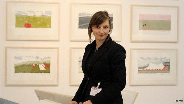 Жінка пише свої яскраво-зелені портрети олією і продає їх на виставці в Бонні за стандартними, як вона каже, на німецькому ринку цінами: маленькі роботи коштують тисячу триста євро, а великі – чотири тисячі.