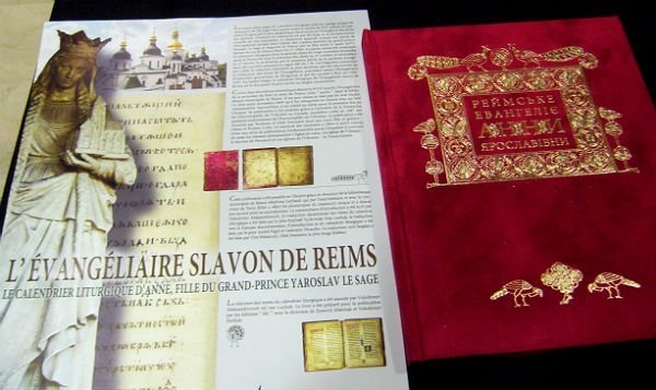 Ну скільки наші історики будуть тиражувати відверту нісенітницю, придуману у ХІХ столітті? Вже сотні разів було доведено, що Реймське Євангеліє не могло бути написане раніше XIV століття, при цьому значна частина його написана глаголицею, що вказує на боснійське чи хорватське походження, з великою кількістю богемських слів. Кирилична частина також має доволі пізнє походження. Перші згадки про Євангеліє датуються XIV століттям - його було придбано в Угорщині, далі воно потрапляє у Константинополь, а відтак лише у 1574 році воно опиняється у Франції. Через 500 років після смерті Анни Ярославни!