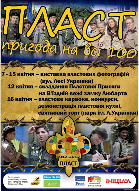 Ця визначна для усіх пластунів подія відбулась 12 квітня 1912 року у Львові. Від того часу Пласт не припиняв своєї діяльності, хоча й не завжди міг існувати в Україні. Після переломних подій початку 90-х Пласт відродився і на своїй Вітчизні. Перші гуртки почали діяти саме у Луцьку завдяки ентузіазму Олега Покальчука, а першу пластову присягу луцькі пластуни нового покоління склали на В’їзній вежі Луцького замку. Тому святкування 100-ліття Пластової Присяги є для лучан особливою подією.