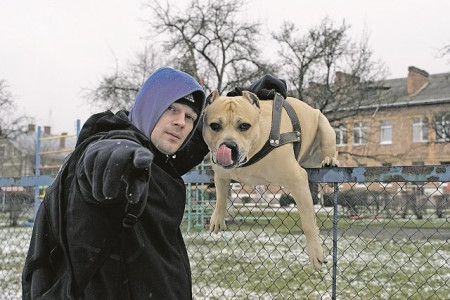 За 800 гривень Женя придбав собі друга, якого вирішив назвати Трет - скорочено від «третій». (Женя ходив купувати пса разом з другом, звідси й виникла прізвисько). Трет виявився здатним і безконфліктним. Досі не навчений команді «фас», ніколи не шкіриться, катає дітей на санках, дозволяє тягати себе за вуха і хвіст. Господар вважає, що бійцівський потенціал собаки йому вдалося направити в спортивне русло.