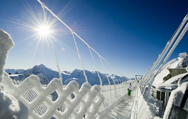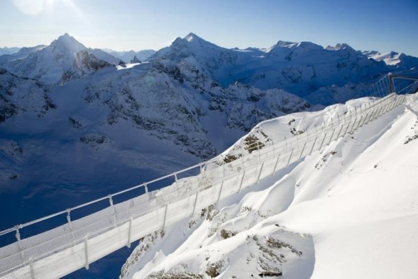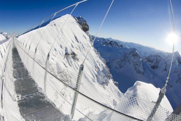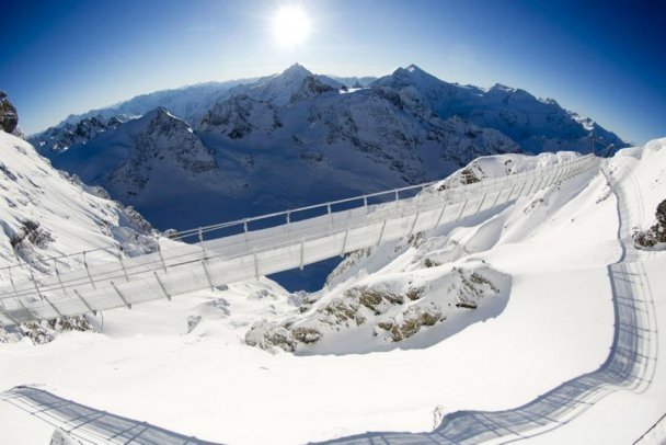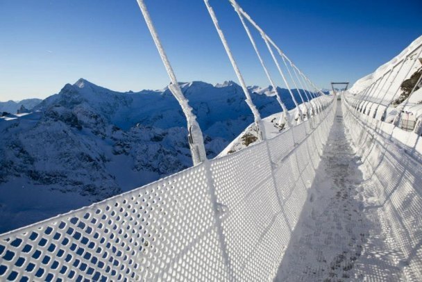 У швейцарських Альпах побудували підвісний міст Titlis Cliff Walk, який визнаний найстрашнішим мостом у світі. Міст закріплено на висоті 500 метрів над одним з льодовиків. Конструкція ‒ завдовжки понад 100 метрів і шириною приблизно метр.