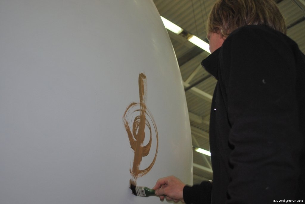 Перший символ на чотирьохметровій писанці – скрипічний ключ – у Луцьку першим намалював лідер рок-гурту «Воплі Відоплясова» Олег Скрипка.