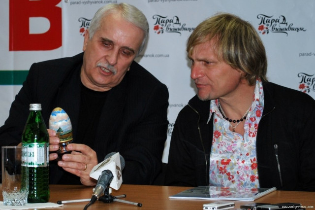 Після завершення розмови із журналістами організатори акції зробили перші мазки по луцькій «Диво-писанці». Так, приміром, Олег Скрипка як справжній музикант намалював там скрипічний ключ.