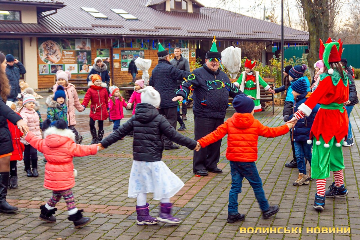 Забава розпочалася із вітальних слів ведучих — веселих ельфів Холлі, Спрайта і Беррі, які познайомилися з дітьми. Після цього вони, разом із Янголятком, влаштували різні забавлянки: водили хороводи, бігали наввипередки, прикрашали «ялинки».Кульмінацією дійства стала поява Святого Миколая. Головний гість привітав усіх із прийдешніми святами та вислухав побажання дітей. А ще роздав їм новорічні подарунки, які власноруч шила екскурсовод Тетяна Шкірпан. Вона розповідає, що в кожну намагалася вкласти частинку тепла своєї душі. Тож можна сміливо говорити — таких іграшок більше немає ні в кого. Додамо, що кожне свято у зоопарку реалізується силами його працівників. Мабуть ще й тому заходи виходять такими щирими. Закінчилося свято традиційним частуванням. Адже працівники зоопарку відомі не лише дбайливим ставленням до звірят, але й гостинністю та вмінням готувати духмяний трав'яний чай та куліш.Директорка зоопарку Людмила Денисенко поділилася планами на 2020 рік. Зокрема, продовжиться соціальний проєкт підприємства — безкоштовний вхід для пенсіонерів щопонеділка (триватиме до 1 березня). Заплановано проведення на весну нового дійства — зустріч перелітних птахів та традиційних, які так люблять відвідувачі. Розвиватиметься і насичення простору інформаційними матеріалами — стендами, плакатами, брошурами. Не обійдеться, звичайно, і без поповнення мешканців зоопарку новими тваринами.