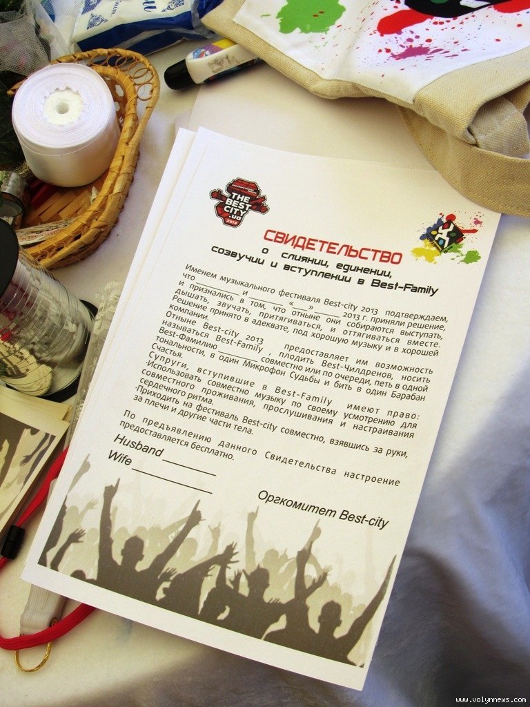 Отныне две ноты будущего аккорда будут звучать вместе, врубая на клавишах жизни бурный мажор на радость тусовке…, - власне, таким чином на фестивалі The Best City побралися двоє щасливих молодят.
