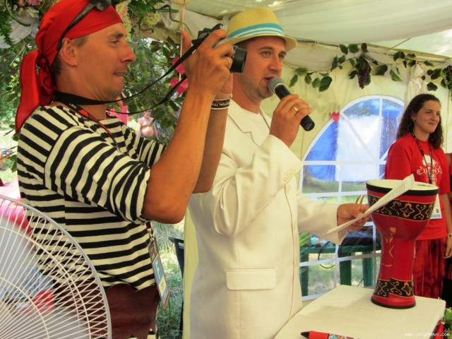 «Мы пришли сюда, чтобы не просто тусоваться, а торжество позырить… они теперь решили оттягиваться не просто так, а в паре..», - коментував ведучий дійства.